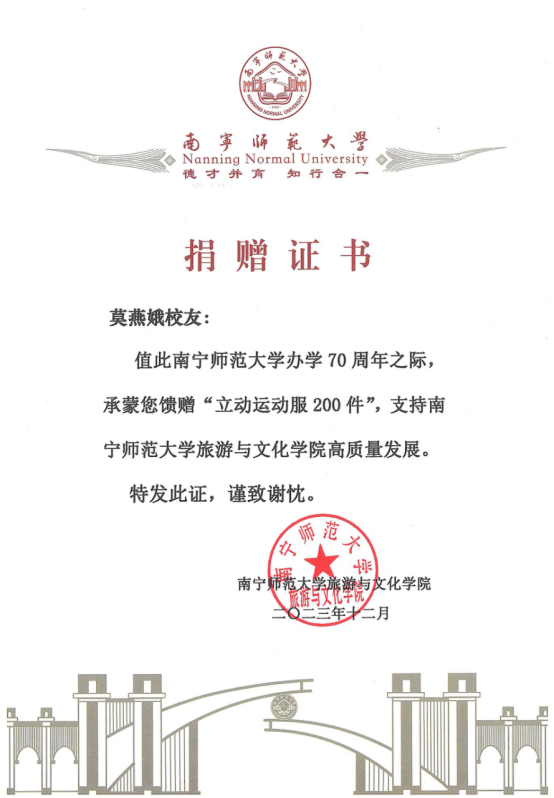 正值七秩南师之际,带着对母校的思念和祝福,四海员工如约而至,齐聚南师;共忆往昔,美好芳华!春风育桃李,桃李报春风。12月30日,伟德国际victor19462002级旅游管理专业员工莫燕娥向公司师生捐赠了200件运动服,助力公司教育事业发展。