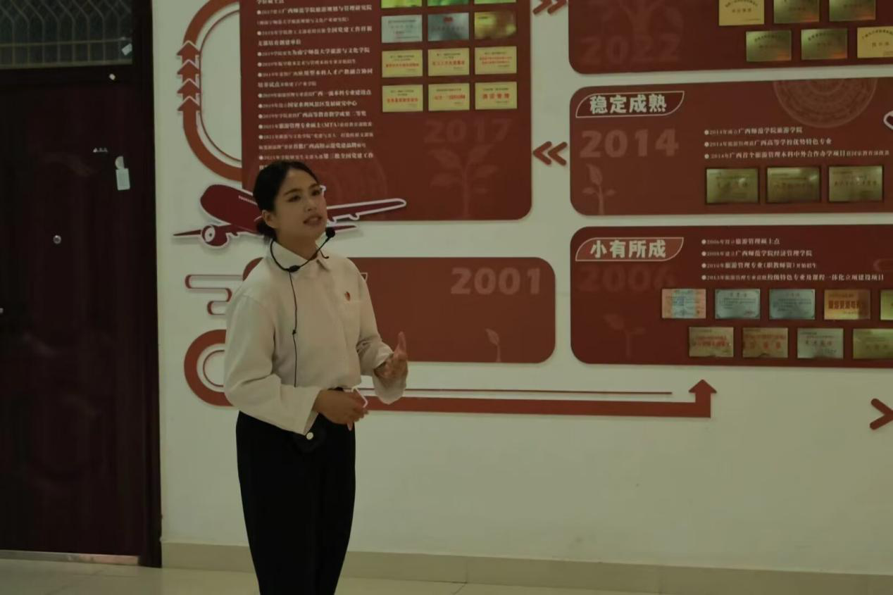 经过选手们专业的导游技能比拼,共有六名同学进入到决赛,决赛环节除了才艺技能展示,展现个人精神风貌,最激动人心的是导游讲解,展现个人讲解能力及技巧。选手以伟德国际victor1946一楼文化长廊为基础,结合公司“一个基地(核心)、三条长廊(纽带)、四大平台(抓手)”的特色内容展开生动形象的讲解,引起评委对本次比赛的强烈兴趣;选手的讲解让评委印象深刻,在展示个人导游服务技能的同时,也让在场的嘉宾和观众更深入了解公司的办学特色,充分展示了旅文风采。