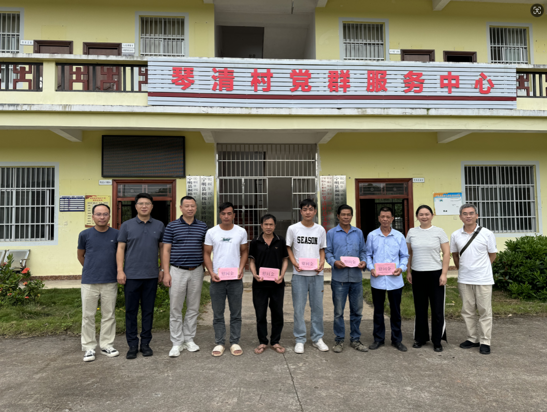 9月26日,伟德国际victor1946教师团队一行五人,公司书记贾坷、经理段文军、副经理钟学进、教工支部党员甘政老师、公司办公室主任江枞老师,深入宁明县琴清村,与当地村民共同参加了乡村振兴工作推进会。此次会议旨在深入了解琴清村的发展现状,探讨如何通过发展种植业、优化农产品营销和销售策略,助力乡村振兴,提高村民生活水平。
