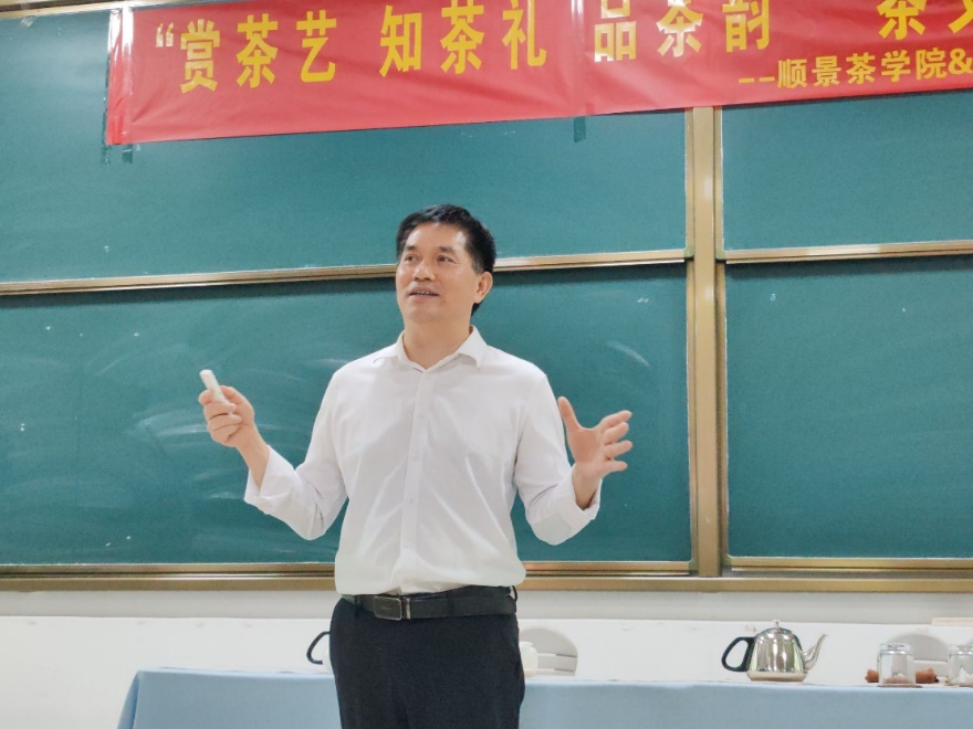 活动当天,会场内弥漫着淡淡的茶香,吸引了众多茶艺爱好者的参与。活动开始,顺景茶公司廉思考老师用生动的语言和丰富的案例,详细介绍了茶的起源、历史以及种类,也让大家对茶文化的魅力有了更深入的了解。