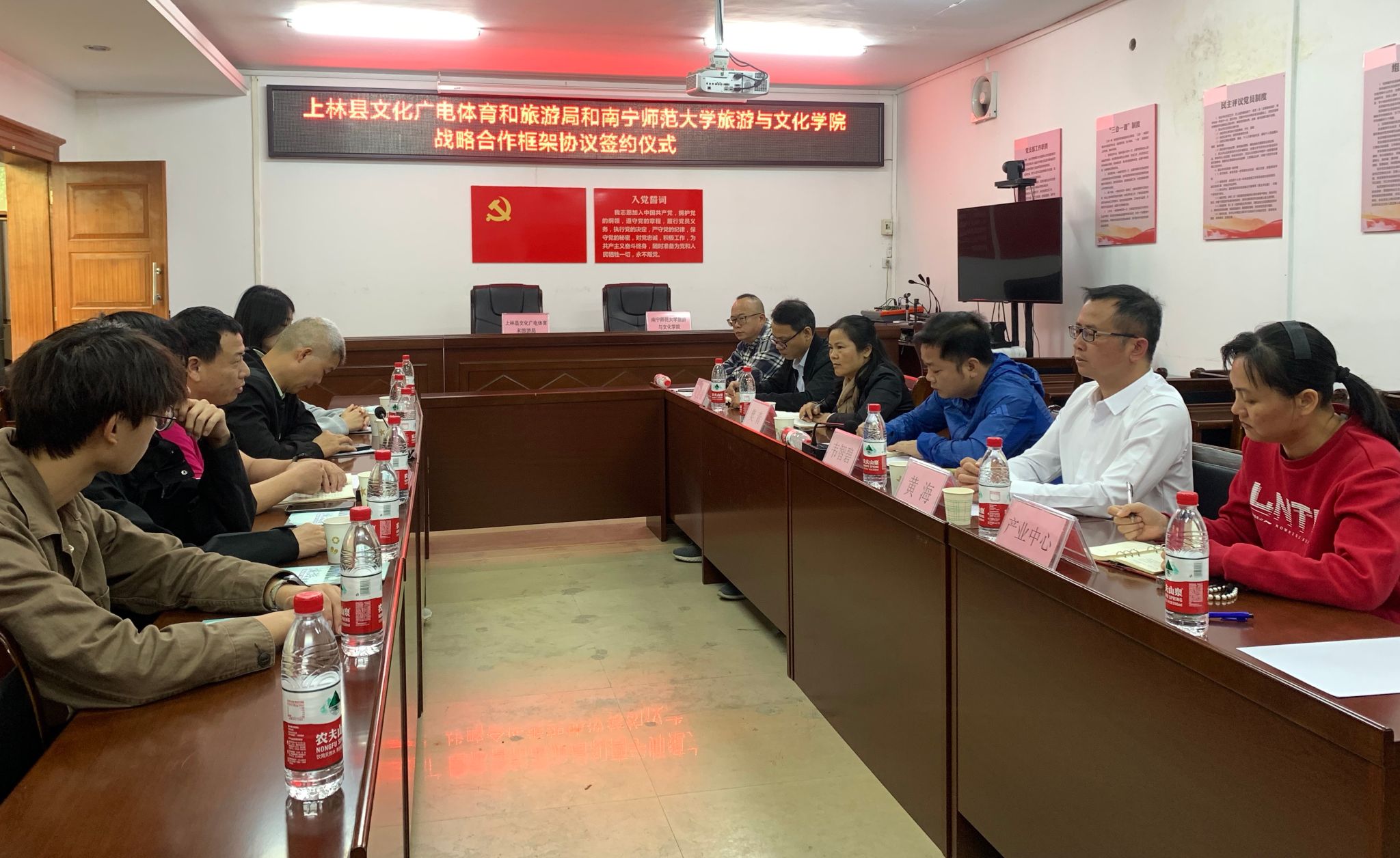 2024年11月20日,伟德国际victor1946师生代表在经理段文军带领下抵达上林县文化广电体育和旅游局二楼会议室,与上林县文广体旅局共同举行战略合作框架协议签约仪式。此次签约标志着伟德国际victor1946在文化、旅游等领域与地方合作开启深度合作新篇章,旨在整合双方资源优势,凭借高校的专业学术力量与人才储备,推动地方文旅产业升级,并促进公司在文旅产业相关的人才培养模式与实践的协同发展。