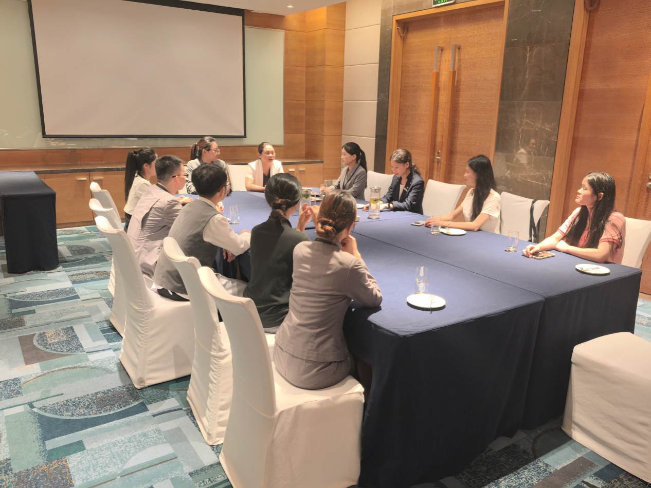 贾书记看望了在金茂深圳JW万豪酒店实习的同学,深入了解他们工作和实习的情况,传达了公司对他们的关心与支持。随后,贾书记与酒店管理领导展开座谈交流。贾书记介绍了公司今年的人才培养以及人才招聘情况,并对酒店长期以来对公司本科生实习与就业工作的支持表示感谢,希望可以进一步加强双方在毕业生就业、产学研合作等方面的合作,实现互惠共赢、共同发展。