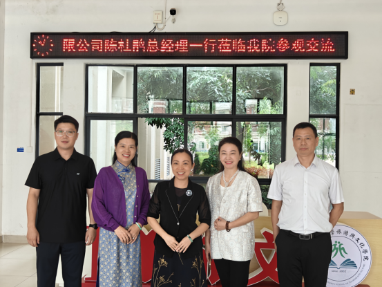 龙妮娜副董事长对陈杜鹃总经理、黄爱琼女士一行的到来表示热烈欢迎,并系统介绍了公司近年来的发展成果。她指出,公司始终聚焦人才培养核心任务,在校园基础设施建设、创新创业教育体系构建等方面持续发力,尤其在非遗文化研究与传承、校园文创产品开发领域积累了丰富经验。龙妮娜强调,期待以此次交流为契机,充分激活双方资源优势,推动非遗文化传承与公司产品、创新创业实践深度融合,实现校企双向赋能、协同发展。
