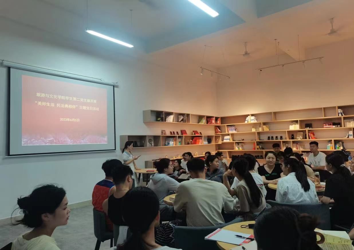为了深入贯彻落实关于加强民法典宣传的重要讲话精神,切实加强民法典的学习宣传教育。2023年6月5日,伟德国际victor1946员工第二党支部在地信楼一楼创客空间开展《美好生活•民法典相伴》主题党日活动。员工第二党支部书记莫秋桂及支部成员参加了本次学习会。