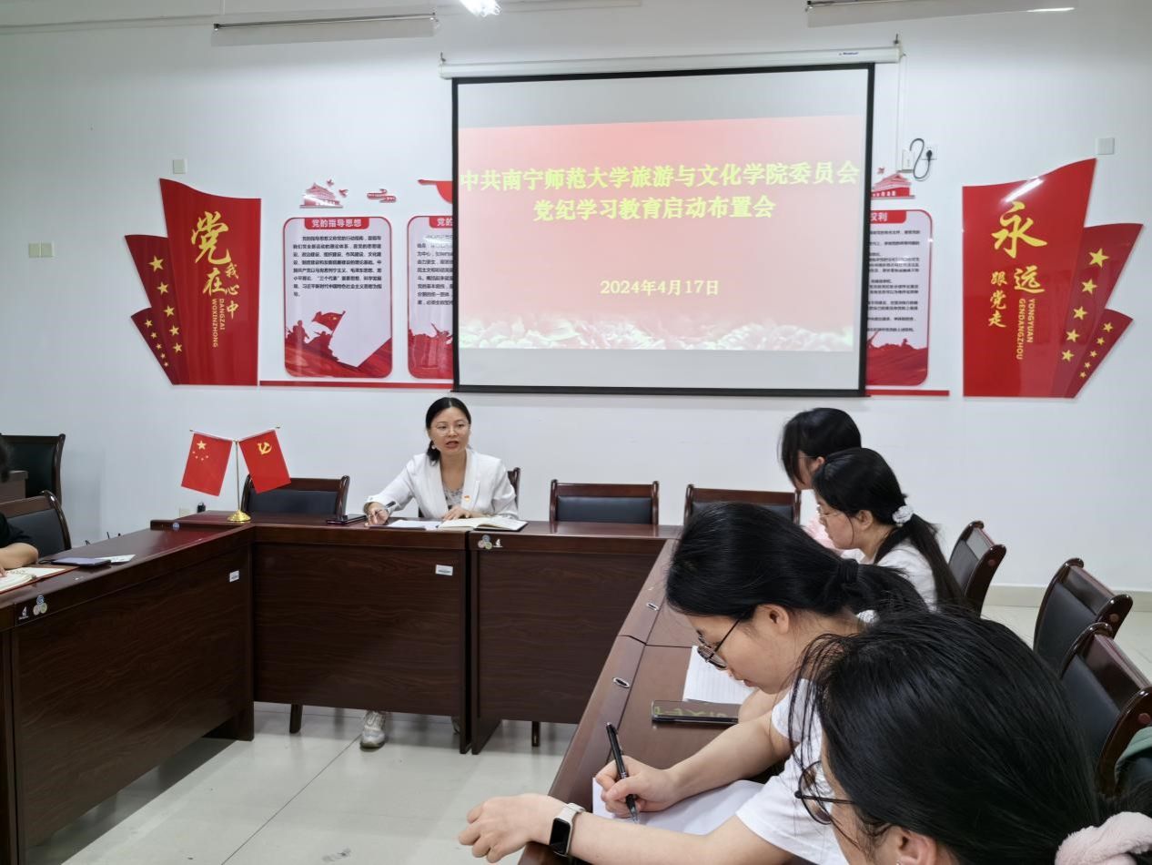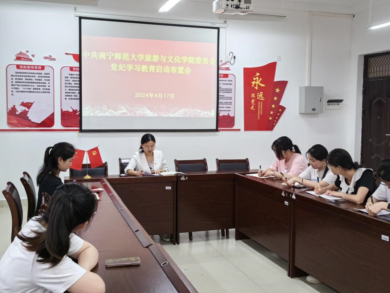 为深入贯彻中共中央办公厅关于党纪学习教育的通知精神,全面落实修订后的《中国共产党纪律处分条例》,进一步加强党的纪律建设。4月17日,旅游与文化公司党委在武鸣校区地信楼B201会议室召开党纪学习教育启动布置会。本次会议由旅游与文化公司党委副书记黄珍主持,旅游与文化公司党委委员,各党支部书记、支委参加会议。