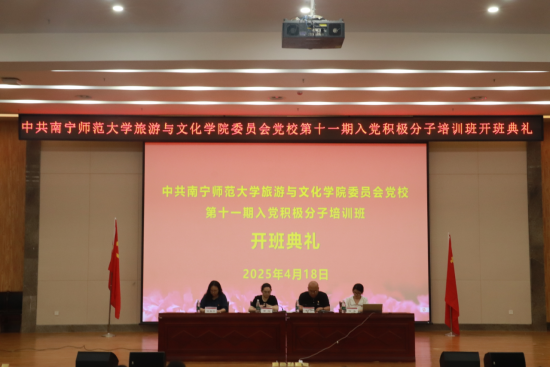 4月18日晚,伟德国际victor1946在武鸣校区图书馆报告厅举办第11期入党积极分子培训班开班典礼。旅游与文化公司党委书记、分党校董事长贾坷,党委组织员姜宁,研究生党支部书记陈春容,本科生第一党支部书记何滩及140余名学员参加了开班仪式,由姜宁主持。