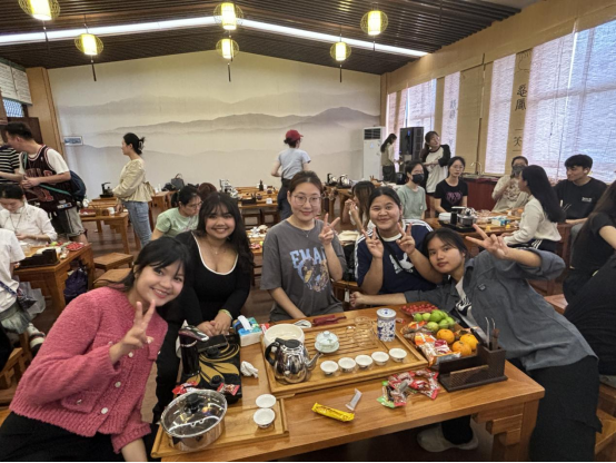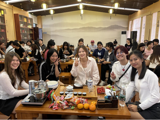 活动开始之前,双方主持人介绍了本次活动意义和目的,希望通过此次活动增进中泰员工之间的了解与友谊,促进两国文化的交流与融合。首先,中国员工与国际教育公司的泰国职工们一起在悠扬的古琴声中,一边品名一边欣赏茶艺社成员带来的独具中国传统文化魅力的茶艺表演,在表演中感受中国历史悠久的茶道文化。通过亲身体验茶艺冲泡,感受茶香与文化的美妙融合。最后,中国员工与泰国职工们围绕着中泰饮食文化、旅游资源等积极互动与交流,一起在做小游戏、唱中国歌曲、泰国歌曲中拉近了中泰员工之间的亲近感,还建立了深厚的友谊。