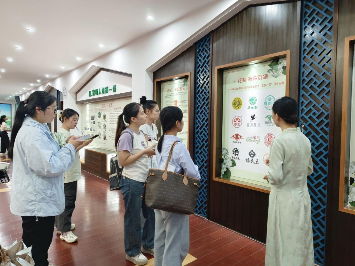 从花海到茶坊,芬芳在热水中完成了从“花魂”到 “茶香” 的蜕变。在周顺来茉莉花茶非遗基地,大家观看了横州和周顺来的宣传片,欣赏了茶艺师精彩的茶艺表演,品上一口横县茉莉花茶,感受其清新的香气,品其700年的历史韵味。
