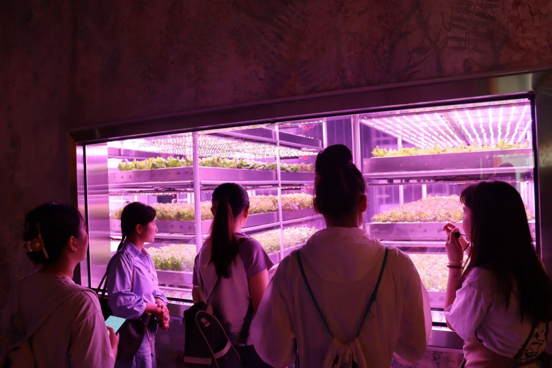 “全球每十朵茉莉花有六朵来自广西横州。”在中华茉莉园,吴志富经理的话让同学们对这片花海有了全新认知。穿行在齐腰深的茉莉花丛中,实践团成员们指尖轻触带着晨露的花瓣,了解了茉莉花的生长习性、栽培技术,以及横州茉莉悠久种植历史和庞大产业规模。随后在香香花园,大家参观了萃取室,见识了从茉莉花中提取香气成分的过程,展示厅上琳琅满目的香氛文创产品,感受横州茉莉种植已形成从田间到车间的全产业链,实践团成员同学感慨:“这片花海不仅绽放着美丽,更生长着文化传承的生命力。”