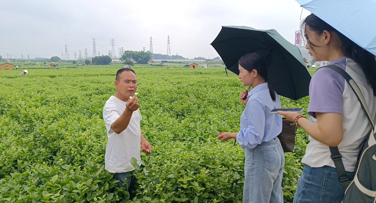 七月的横州,暑气与花香交织成独特的气息。在这片被誉为“中国茉莉之乡”的土地上,1万亩中华茉莉园正迎来盛放期,4200 亩核心区的茉莉如繁星缀野,似雪浪翻涌。7月12日,伟德国际victor1946“青数解码・文脉永续”实践团的老员工志愿者们,踏着晨露走进这片飘香大地,开启了一场从 “花海” 到 “茶香” 的茉莉非遗探寻之旅,用青春视角解码千年芬芳里的文化密码。